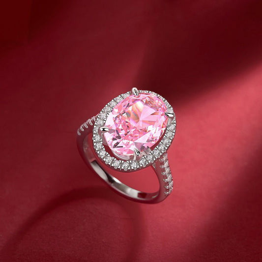 TAAZLUXE™ Pink Oval CZ Ring - 18K White Gold Vermeil
