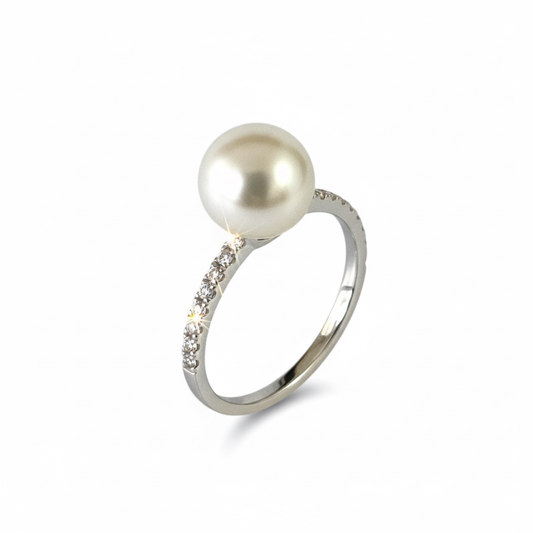 TAAZLUXE™ White Akoya Pearl, PT950W Ring with Natural Diamonds