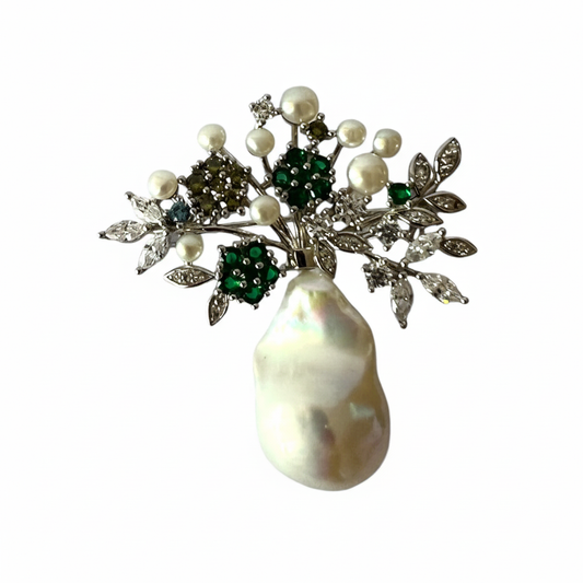بروش TAAZLUXE™ S925 من اللؤلؤ الباروكي مع زركونيا مكعبة ولآلئ صغيرة