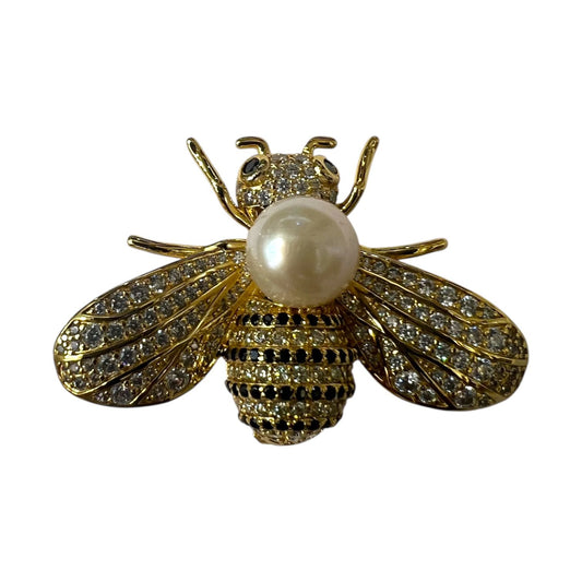 بروش نحلة العسل من TAAZLUXE™ S925 مرصع بالزركون واللؤلؤ الأبيض | مطلي بالذهب عيار 18 قيراطًا