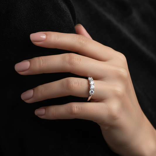 خاتم مويسانيت نصف الأبدية من TAAZLUXE™ - مطلي بالذهب الأبيض عيار 18 قيراطًا
