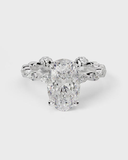 Queen - 18K Gold, Oval Diamond, Marquise Diamonds on the side, Lab Grown Diamonds